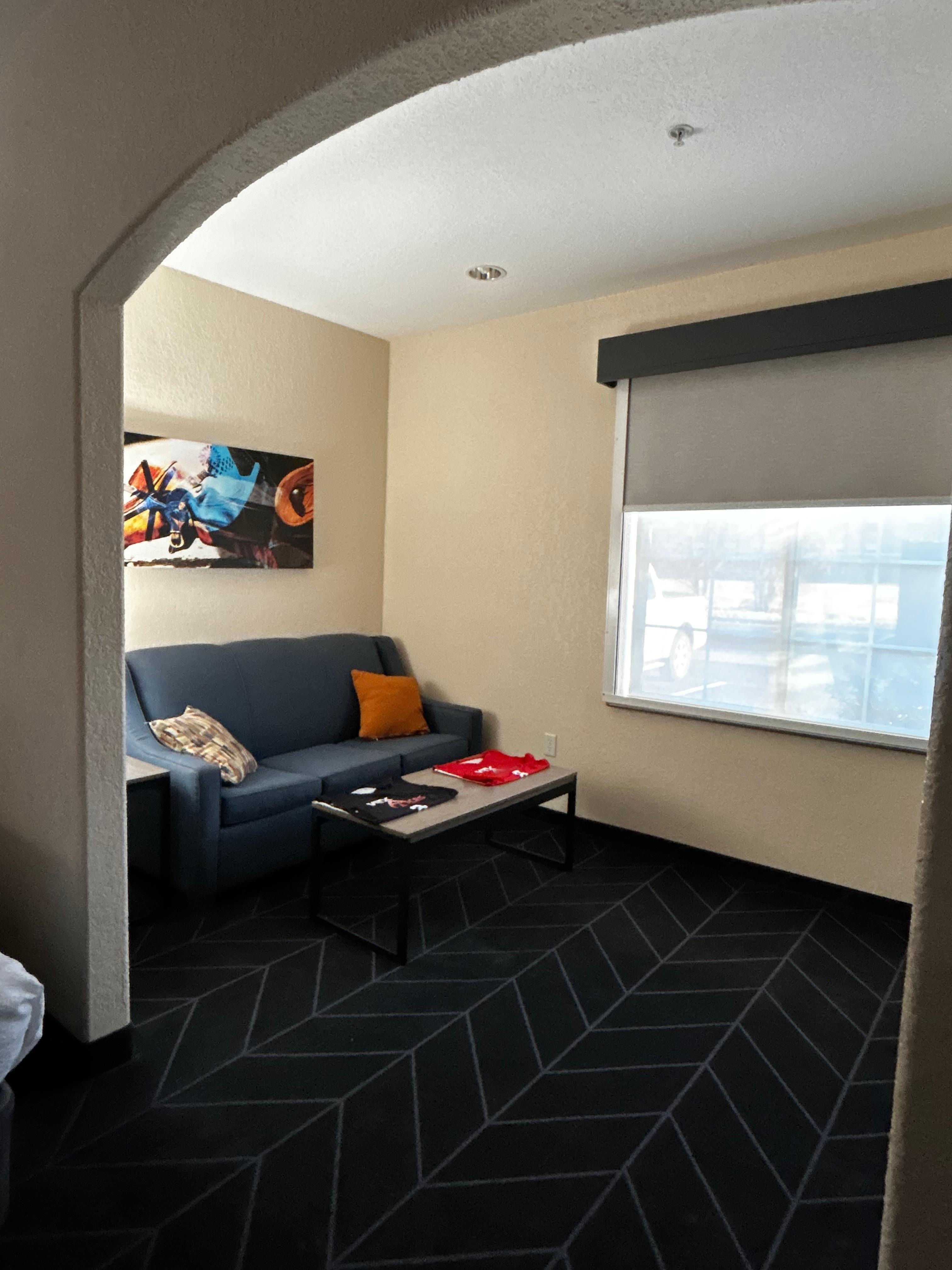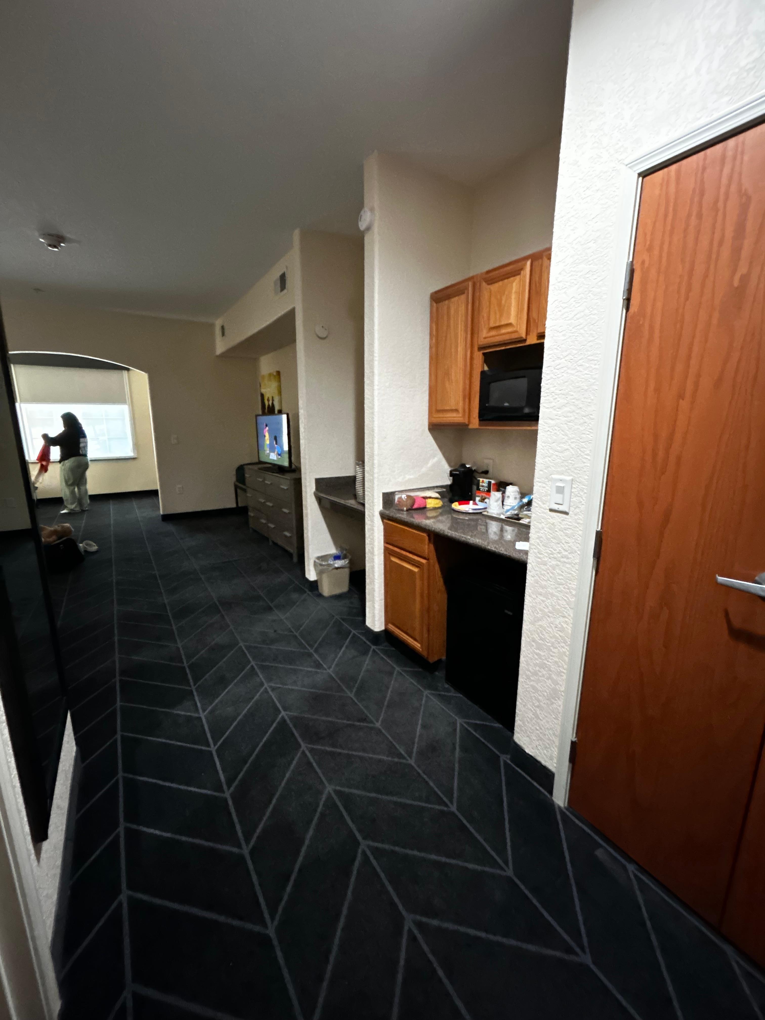 The room was nice and clean. I was pleasantly surprised at the quality of the room. My biggest complaint is the availability of staff to assist. A neighboring guess was very loud (laughing, yelling, banging on furniture) for hours after 10 PM. It woke my daughter and myself multiple times. We had just returned from 13 hours at a volleyball tournament around 8 PM and wanted to go straight to bed. She also had to be back up early for a second day. We had very broken, miserable sleep. I attempted to call the front desk numerous times both on my cell phone and with the room phone. I never could get a response. I also could not leave a voicemail as it said it was full. I attempted to also contact the property through text message and email but never received a response in any form. Upon check out in the morning, there was no one at the front desk to check me out or to speak to about the night before. I had to leave my keys at the desk. I never encountered a staff member again after check-in.