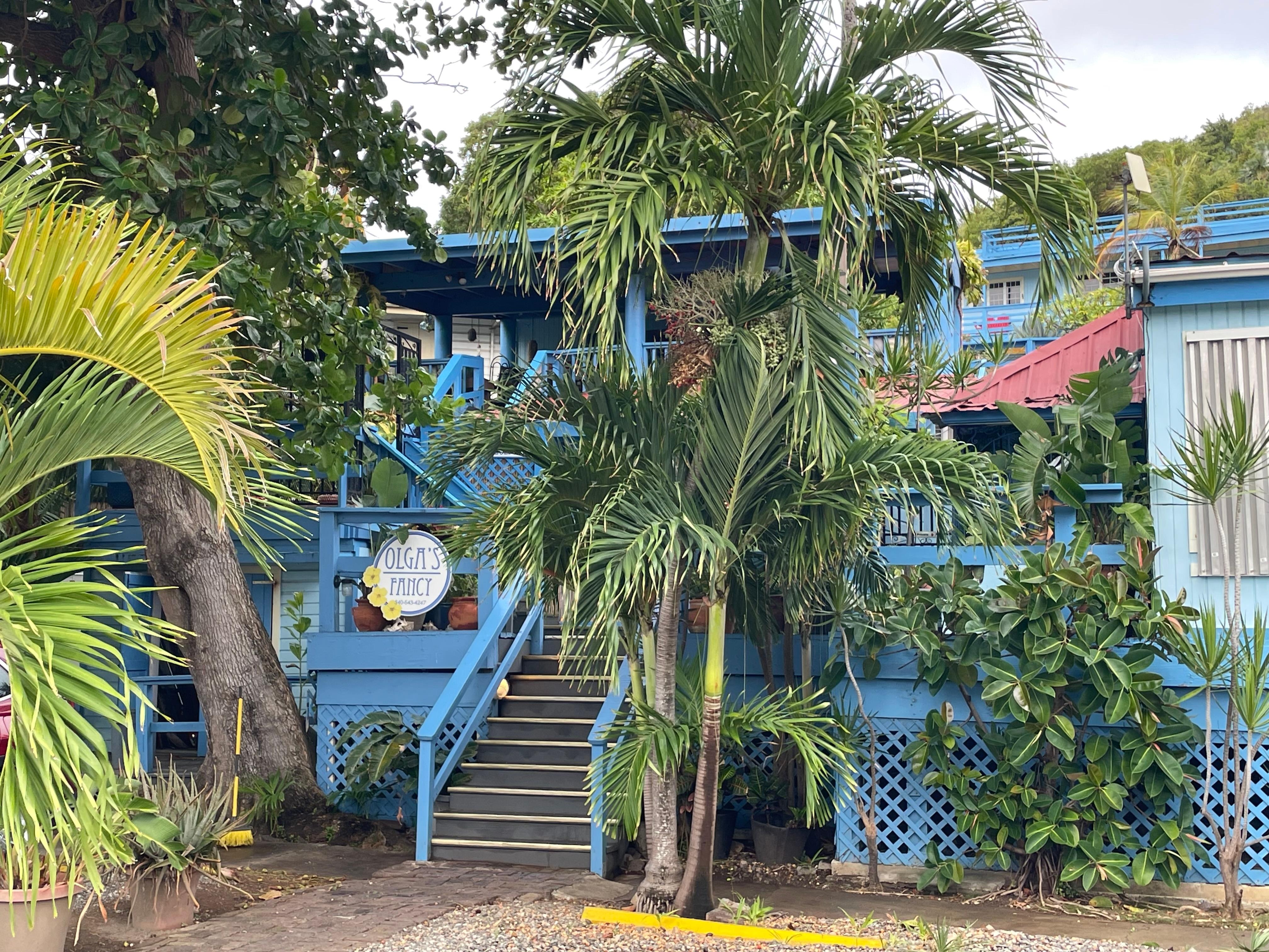 If you are hoping to experience St Thomas like a local, Olga's Fancy should be high on your list. Tucked away at the end of a peninsula in Frenchtown, it is easy to see why past Governors and the Russian Consulate chose this hillside estate overlooking both Charlotte Amalie and the ocean. You'll be footsteps (and a few staircases) away from several quality restaurants, as well as the jitney bus system that can take you to Brewers Beach, Charlotte Amalie, Sapphire Beach, and Red Hook (where you can catch the passenger ferry to St. John).