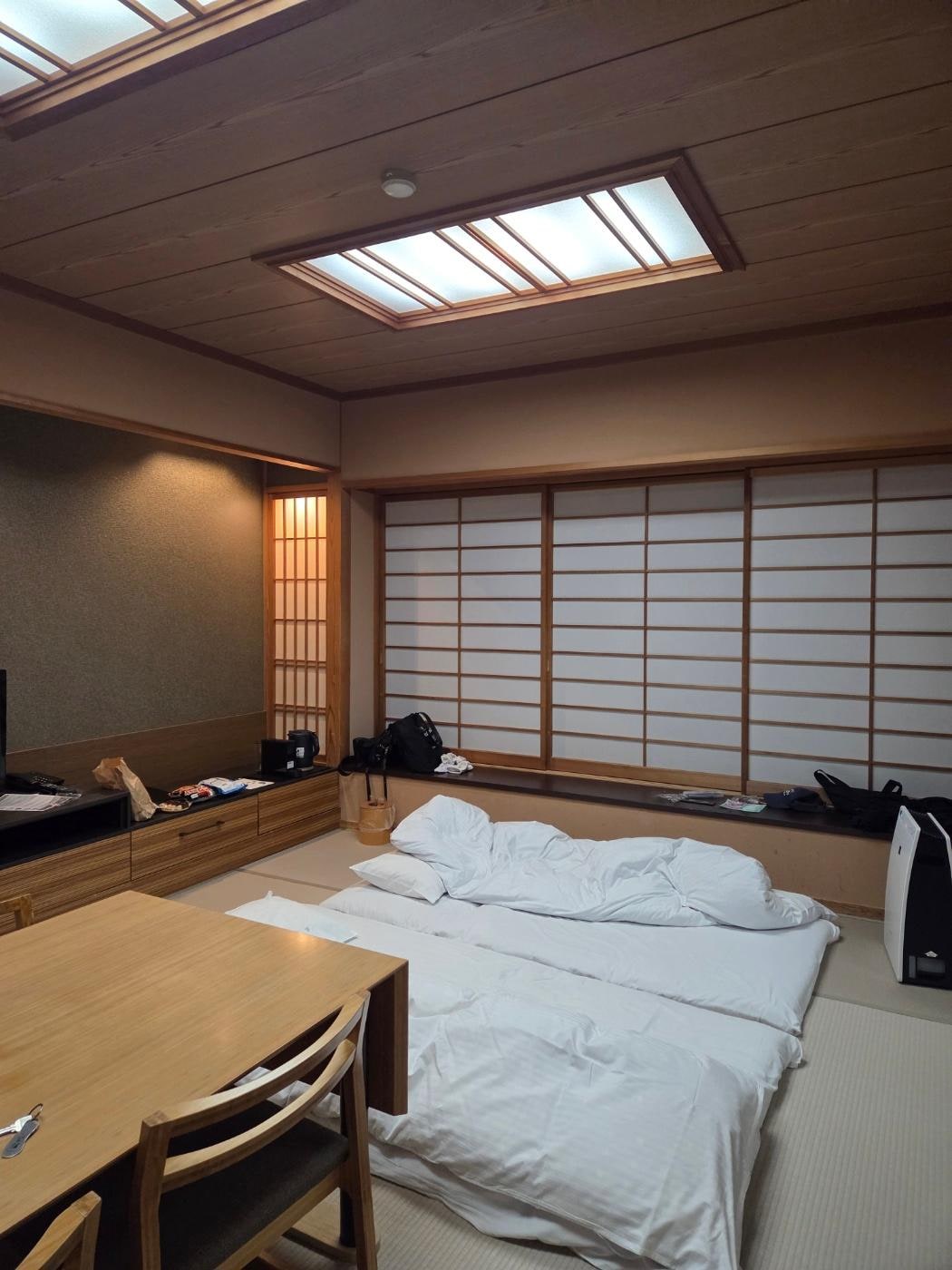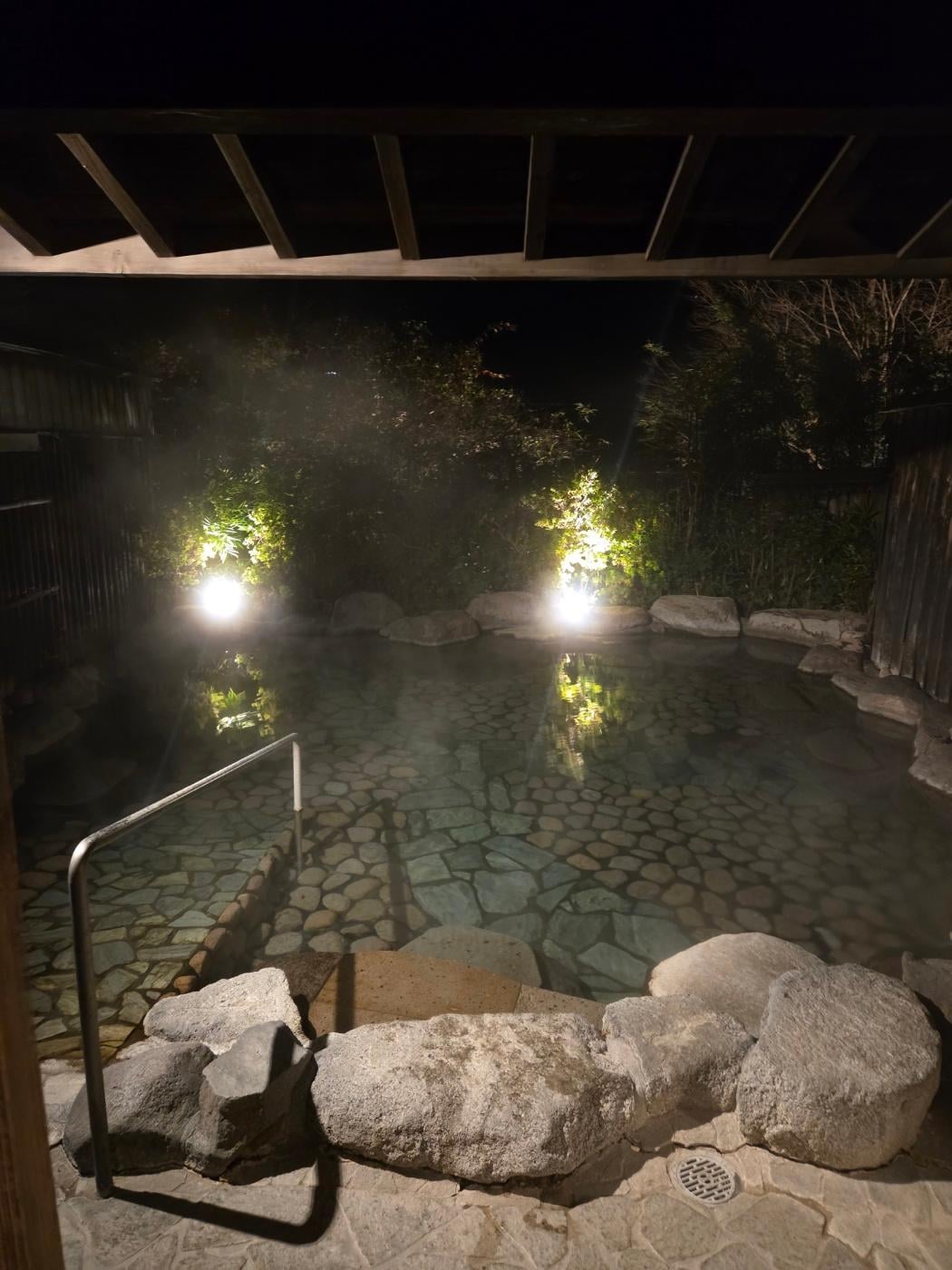 O uso de vestimentas, incluindo roupas de banho, não é permitido para os hóspedes nos banhos públicos ou nas fontes termais.