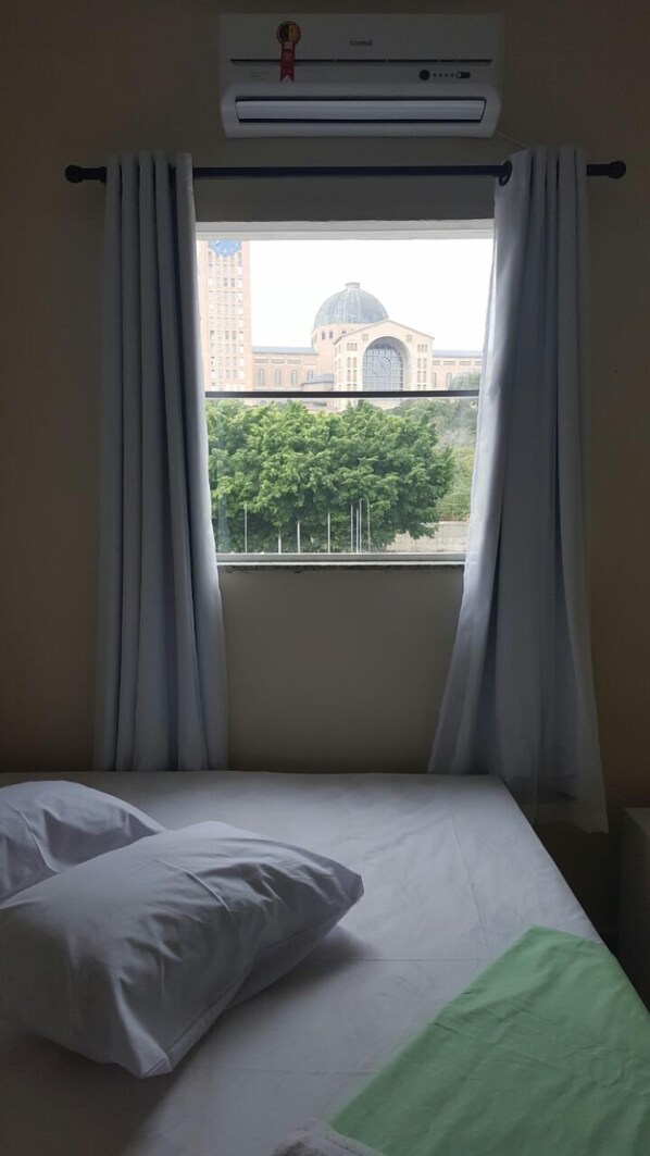 Próximo a Basílica de Aparecida atendeu de imediato minhas necessidades, local bem próximo, inclusive de feiras. Quanto ao hotel propriamente dito estrutura regular, contando com estacionamento fechado (coberto),quarto e limpeza satisfatório, apropriado ao valor cobrado. O que deixou a desejar foi o café da manhã, inclusive quando fomos nos servir (08;20) já não tinha mais frutas, como também gêneros alimentícios próprios ao café da manha. Questionada a servidora, diga-se de passagem, uma guerreira, disse que infelizmente não tinha mais frutas e tão pouco alimentos para repor, sendo o que tinha era aquilo. A observação quanto a servidora é que a mesma estava sozinha na cozinha, era ela que fazia a reposição dos materiais na mesa, recolhia as xícaras e talheres, limpava as mesas, entrava na cozinha para lavar a louça, bem como recolocava novamente para uso. No mínimo as tarefas deveriam ser executadas por 3 pessoas e não 1 só..
