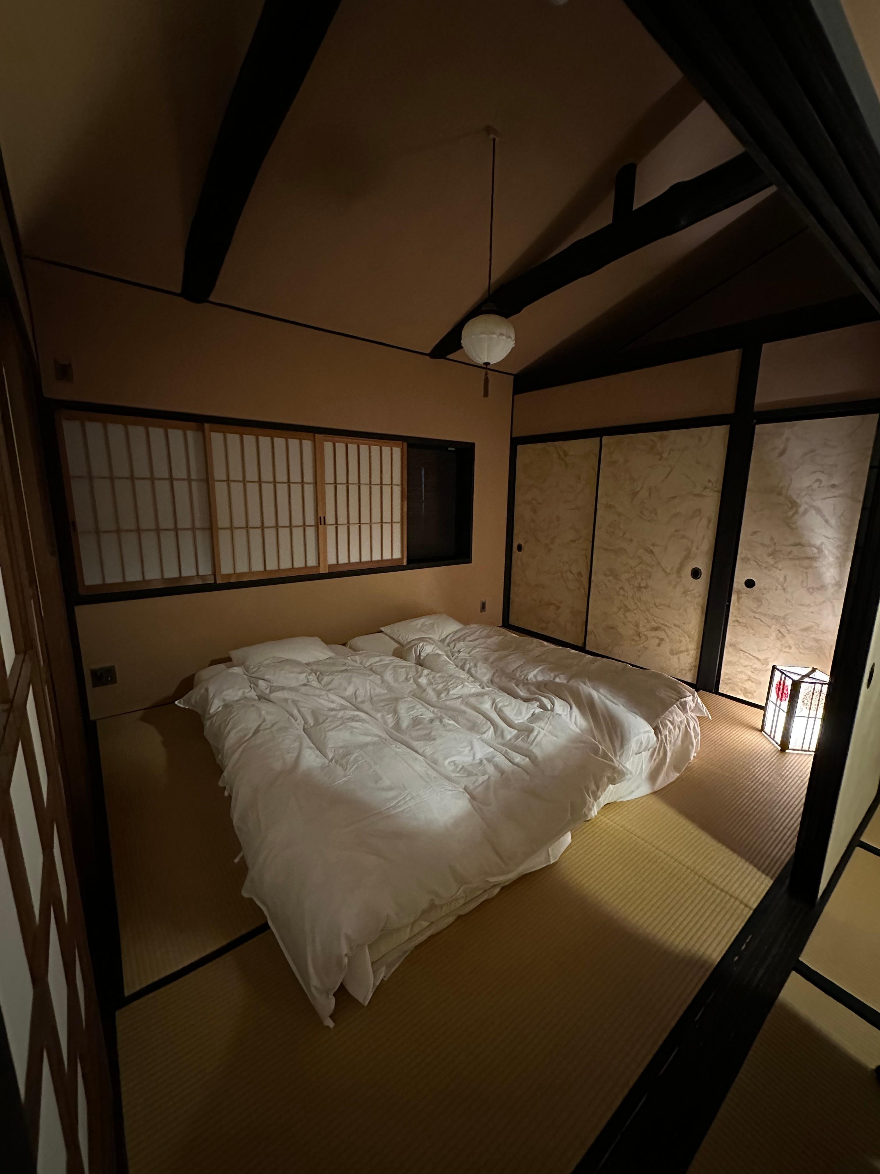 The house is large with two floors, its own small beautiful garden, large bathroom downstairs with bath tub made of wood and small bathroom upstairs next to the bedroom. The walls are made of some kind of sensitive clay and sand, tatami mats in the large rooms and a fresh modern toilet. The walls are thin which means that noise can easily be heard by the neighbours so you have to keep the conversation tone low and not make loud noises that can disturb the neighbours, it may be good to think about it. Futon beds are not something that suits everyone as they can be a bit hard to sleep on but we used several mattresses on top of each other so that it felt comfortable.