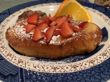 Sheryl has seen to everything, from the incredible comfort of our room (the Wilder Suite) itself and its bed, shower, and large, open bathroom to the comfort and conveniences of the entry and sitting areas that boast a refrigerator stocked with drinks and a place to stow leftovers, water dispenser, Keurig, cookies, coffee for early risers, and a delicious breakfast (The crème brûlée French toast was scrumptious!) served on lovely china and crystal.