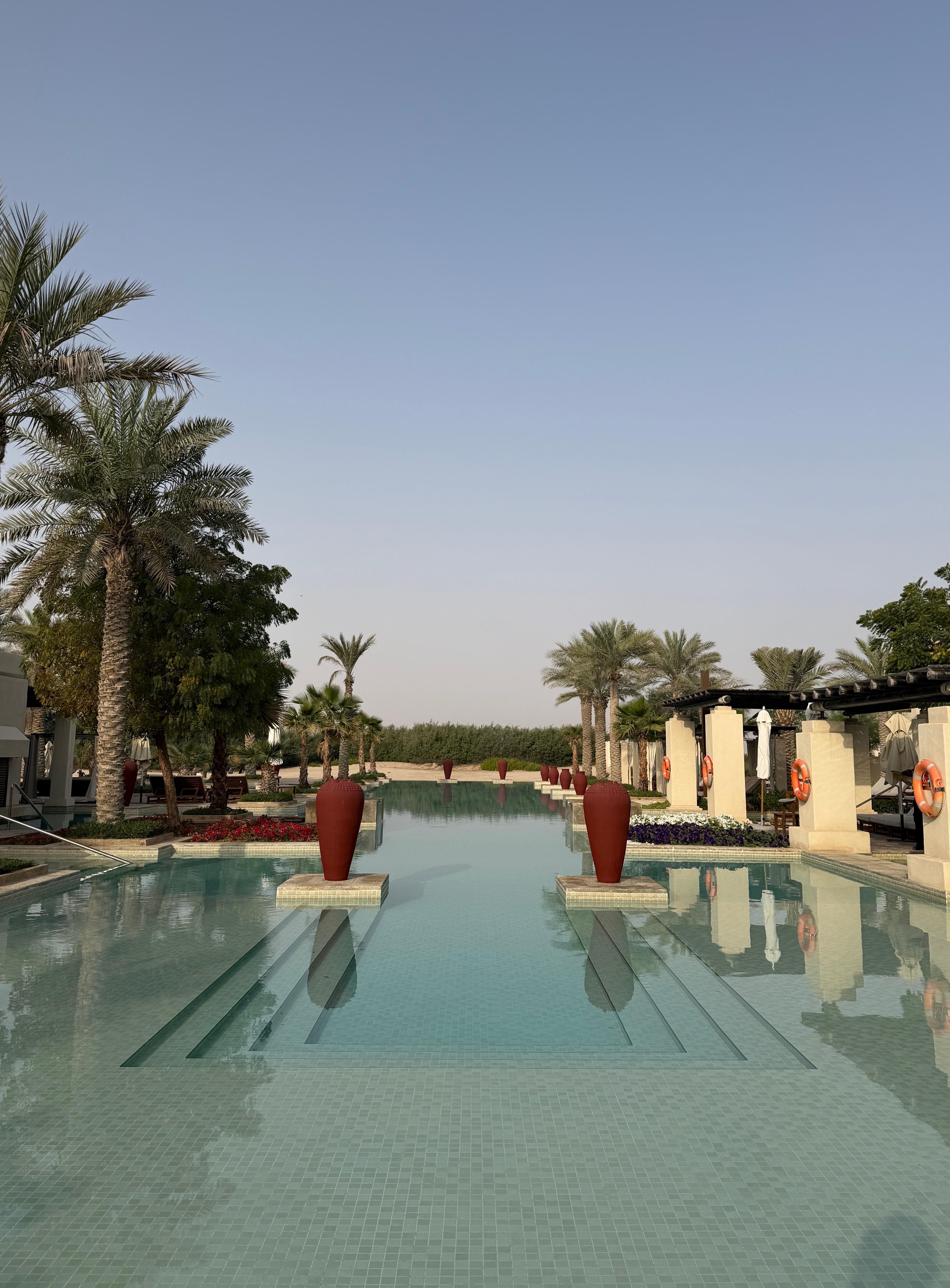 Das Resort ist ca 60km von Abu Dhabi gelegen und super ausgestattet. Servicepersonal sehr freundlich und bemüht (wir hatten mit 2 Zimmer Villa sogar einen eigenen Butler- Asanka). Qualität der Speisen exzellent.