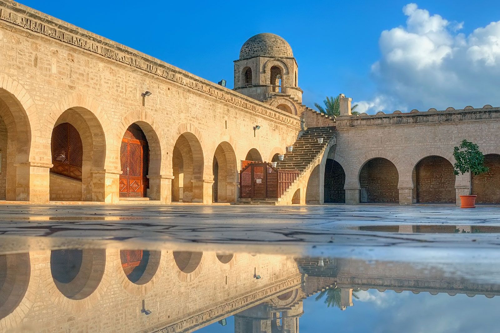 The Grand Mosque, part of the UNESCO World Heritage site of the Medina of Sousse, dates to the 9th century and is among the oldest mosques in North Africa. Built during the Aghlabid dynasty, the building originally served as a kasbah, a fort. It was later adapted to serve as a mosque for religious purposes.
